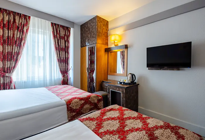 Tek büyük yatak veya iki ayrı yatak seçeneği sunan bu oda tipi, farklı konaklama ihtiyaçlarına uygun esnek bir kullanım sağlar. Konforlu yapısı ve sıcak atmosferiyle misafirlerin dinlenebileceği rahat bir alan sunarken, keyifli ve huzurlu bir konaklama deneyimi yaşamanıza yardımcı olur.